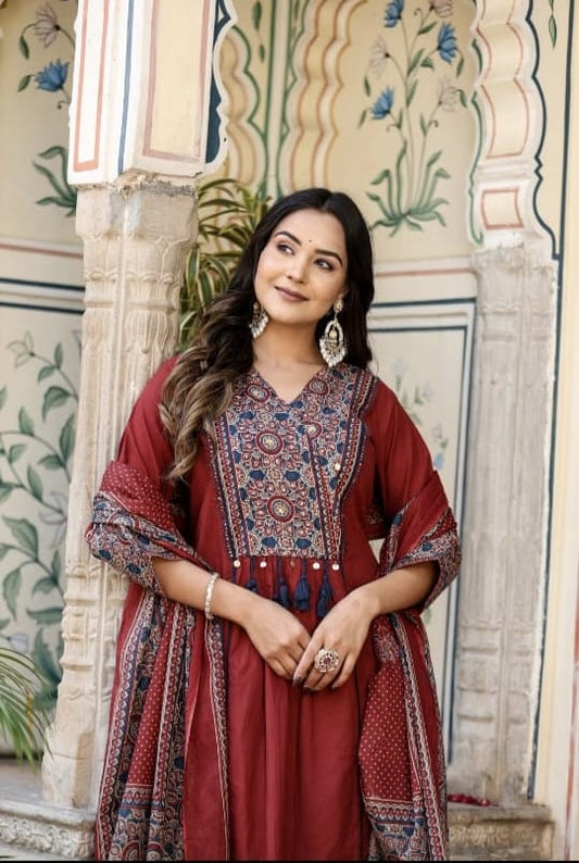 Beautiful printed with embroidery work anarkali kurta dupatta set (PVCRD01)