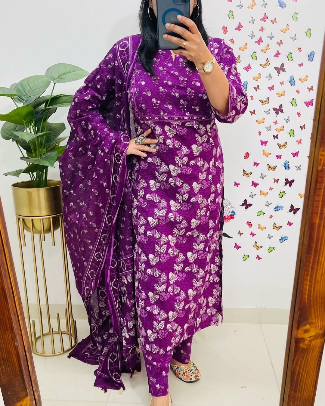 🌹🌹Pure fine Cotton fabric Embroidery Work Kurti with Pant with cotton 100-100 Dupatta🌹🌹